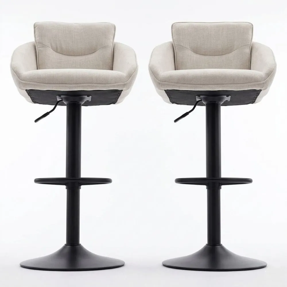 2er Set Höhenverstellbare Leinen Barhocker mit Rückenlehne und Fußstütze, Beige