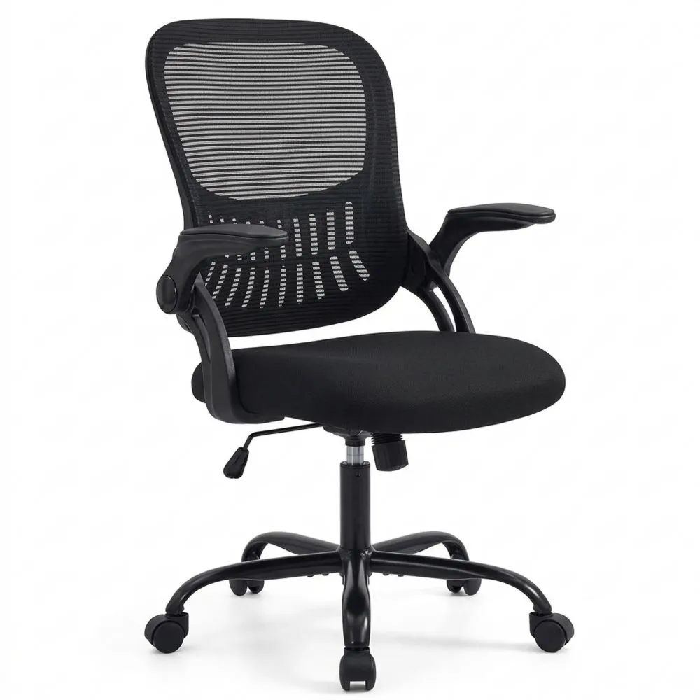 Ergonomischer Bürostuhl mit Klapparmlehnen, Höhenverstellung und Lordosenstütze