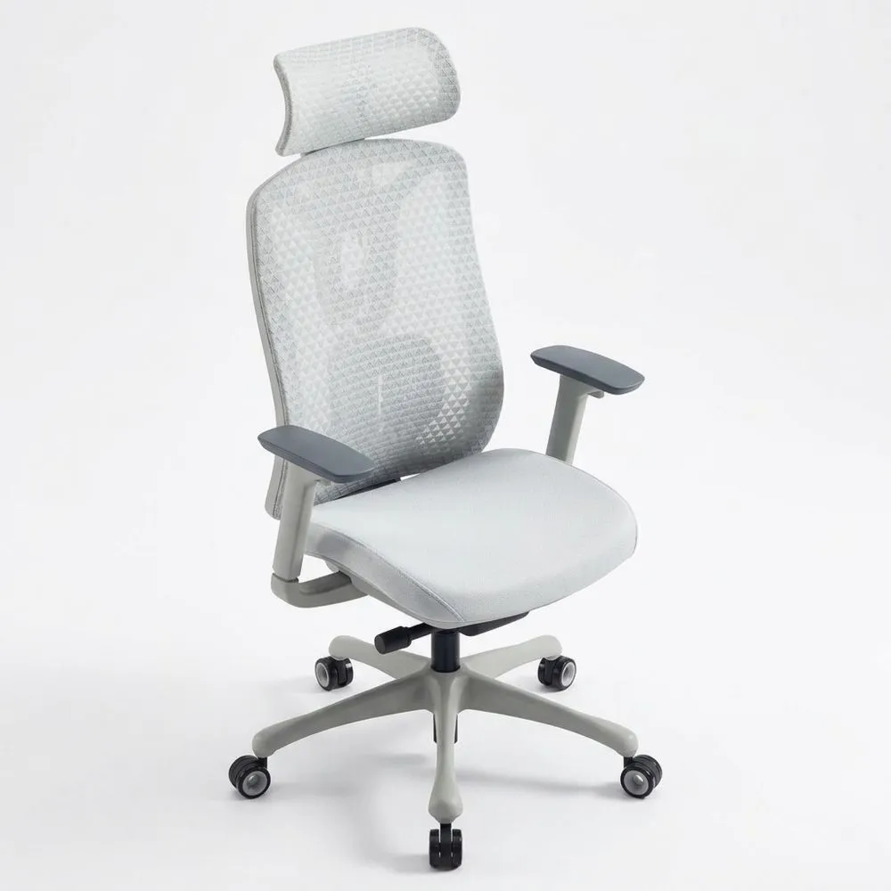 Der Schreibtischstuhl ist mit einer luftdurchlässigen 3D-Mesh-Rückenlehne und verstellbarer Lendenwirbelstütze ausgestattet, die sich verschiedenen Körperformen anpasst. Die Sitzpolsterung reduziert den Druck auf die Sitzknochen und ermöglicht längeres Sitzen.